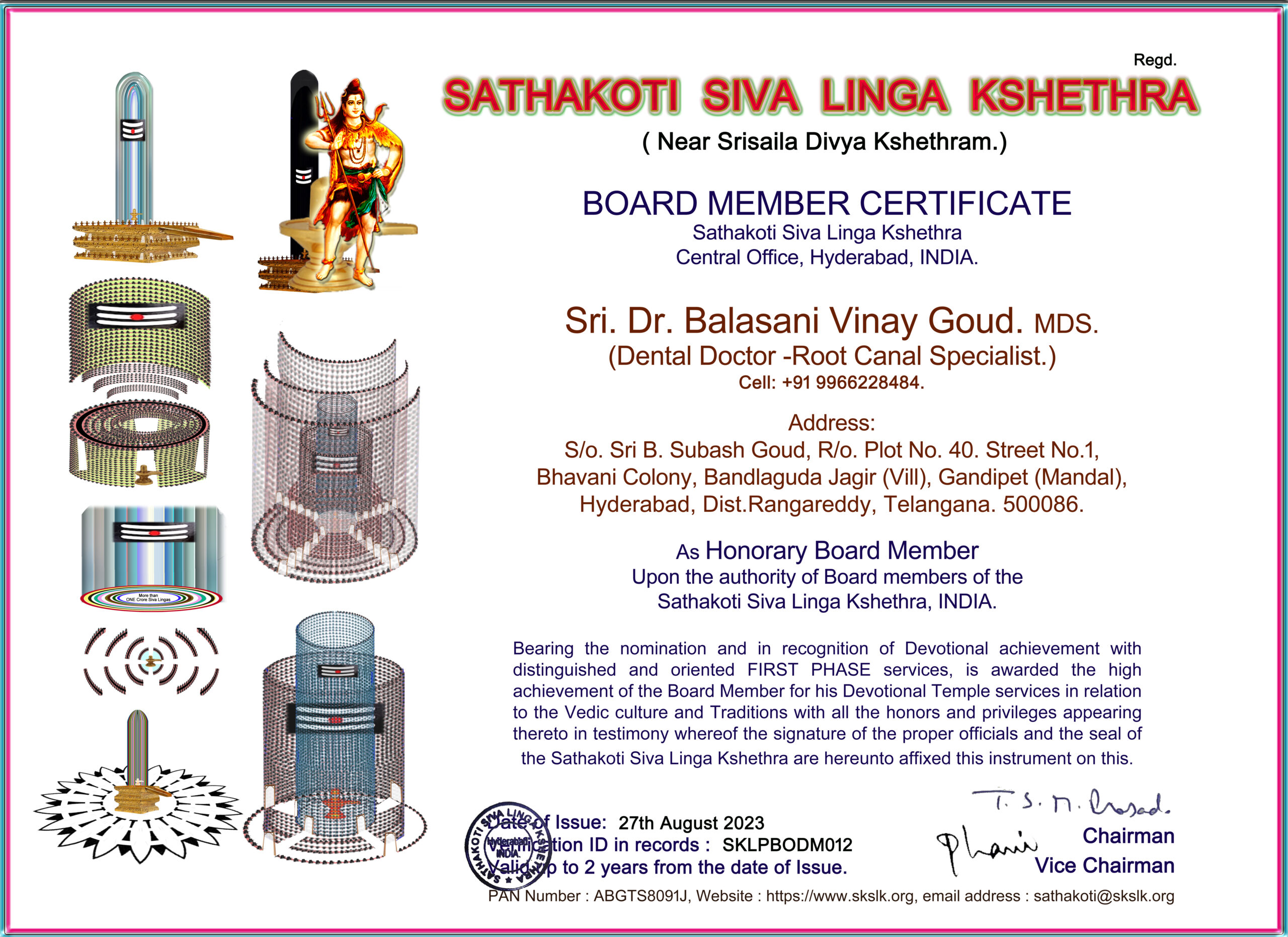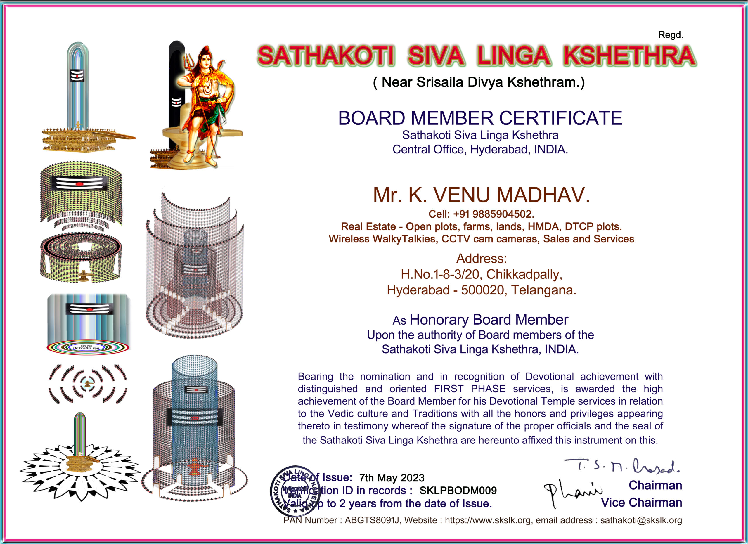 • Register for Prathishta, poojas etc.